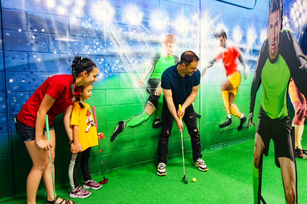 Venez découvrir notre Mini Putt intérieur de 18 trous, offrant 5 thèmes captivants avec et sans blacklight. Chaque parcours est conçu pour être unique, interactif et divertissant. Adapté pour les jeunes et les moins jeunes, c'est l'endroit idéal pour une sortie en famille ou entre amis. Une aventure mémorable vous attend.